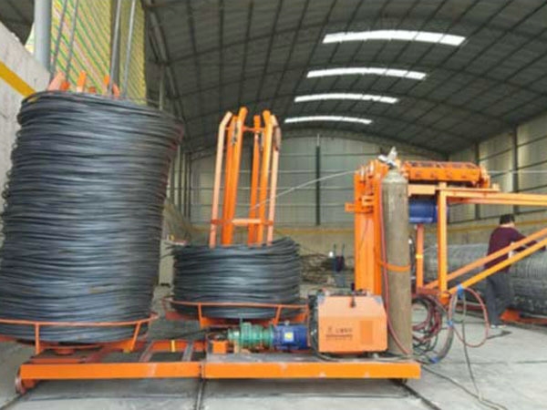 5、绕筋线材经过矫直系统,由弯曲状变为近式直线,按螺旋状缠绕在钢筋笼上,以保证绕筋间距及形状的完整。